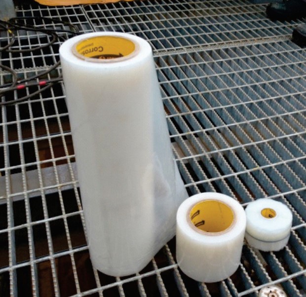 Ambas caras del film proveen de protección con VCI. Las medidas de los rollos son de 16″, 4″ y 2″ de ancho. El sistema cuenta con testigos de acero val carbono, para que pueda colocarse uno en la parte interna protegida y otro en la parte externa, de modo de verificar la corrosión evitada en el medio en cuestión.